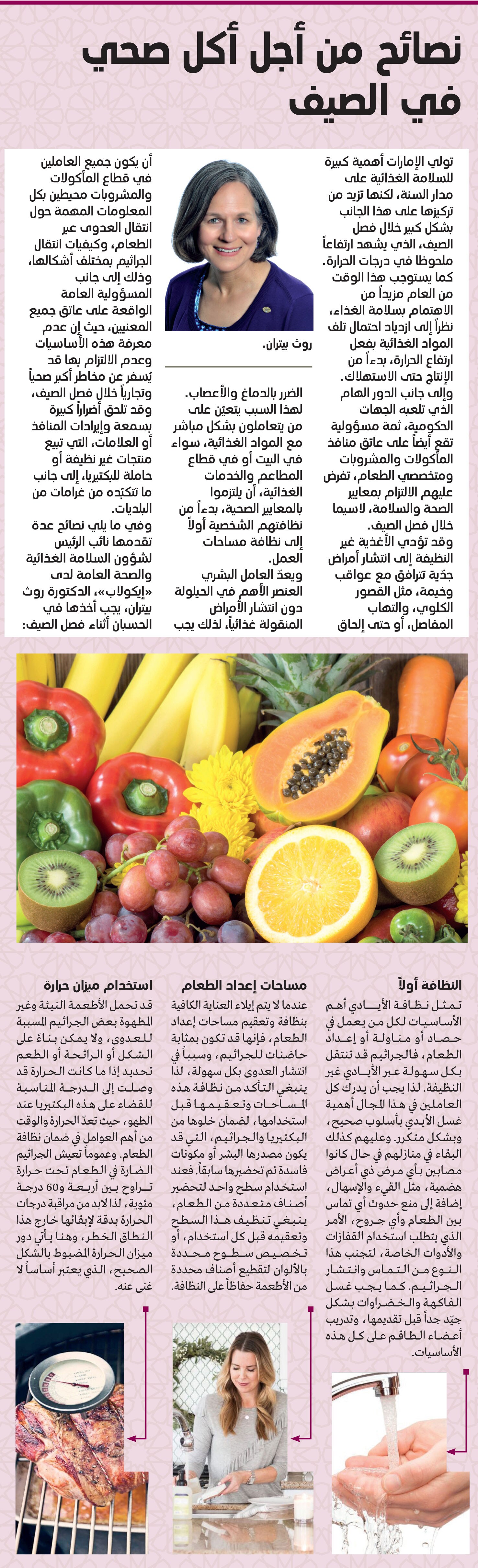Vice President, Food Safety and Public Health at Ecolab, Dr Ruth Petran shared tips on how to maintain food safety during the harsh summer conditions in the Middle East in the Arabic newspaper Emarat Al Youm. Click here to see the Arabic print version of the below translated feature.